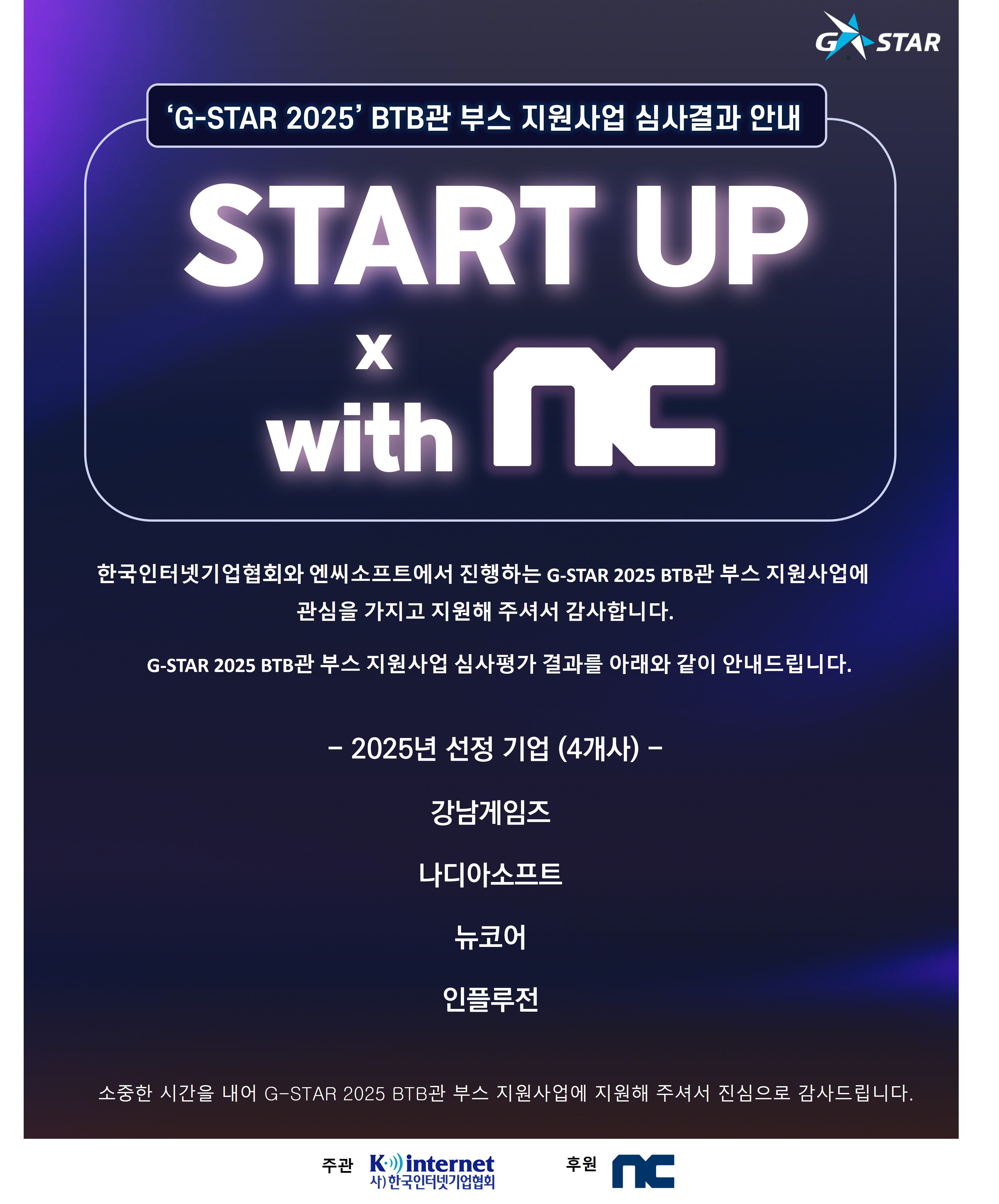[공지] 'G-STAR 2025' BTB관 부스 지원사업 심사결과 안내